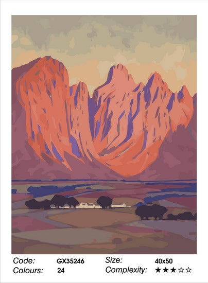 This lovely and uniquely South African 40 x 50cm version of his painting quite challenging with 24 colours. Each box contains a stretched, printed and numbered canvas, paint, brushes and a page detailing the numbers for an extra reference.